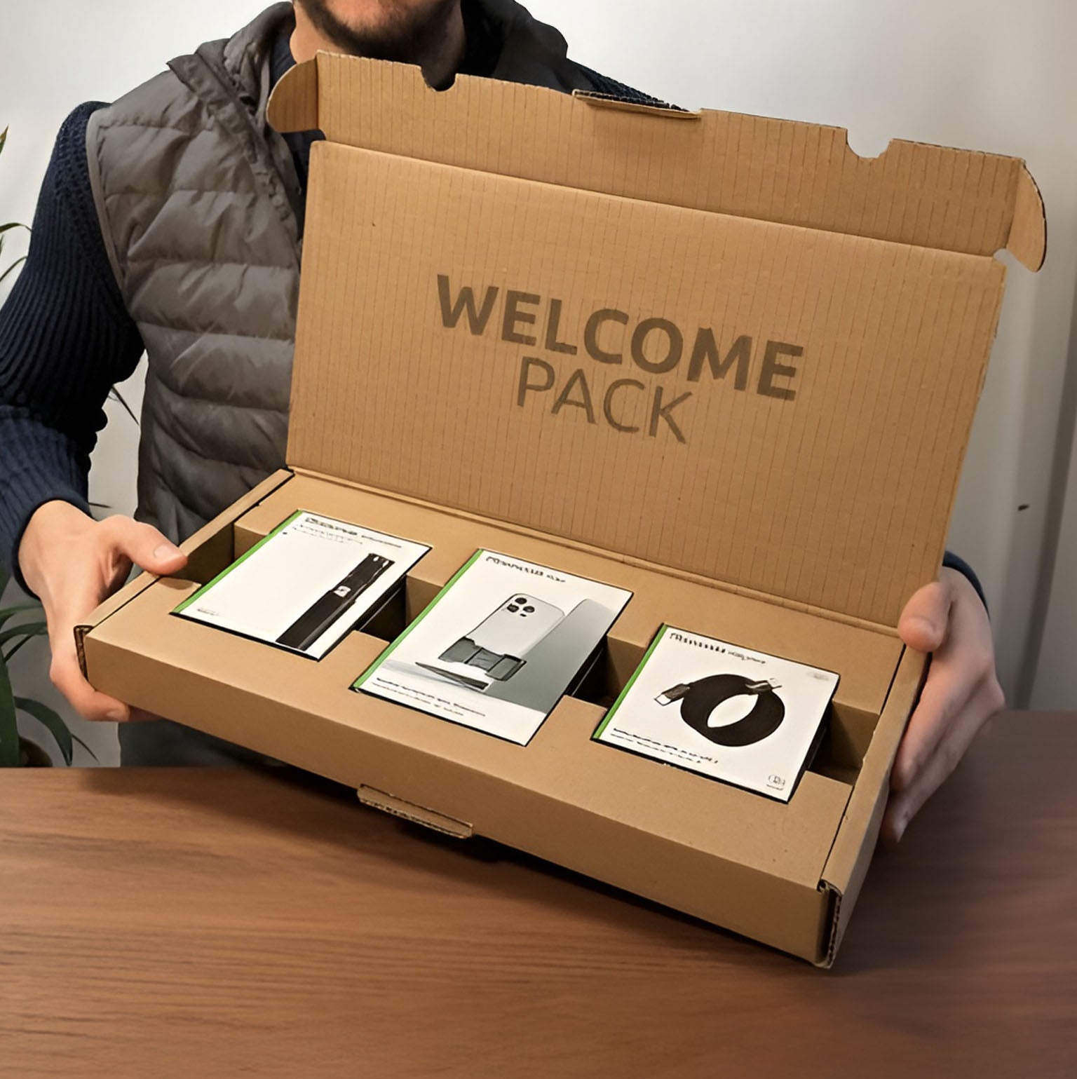 We create custom-made gift boxes and Welcome Packs, ideally designed for welcoming your clients, for example.