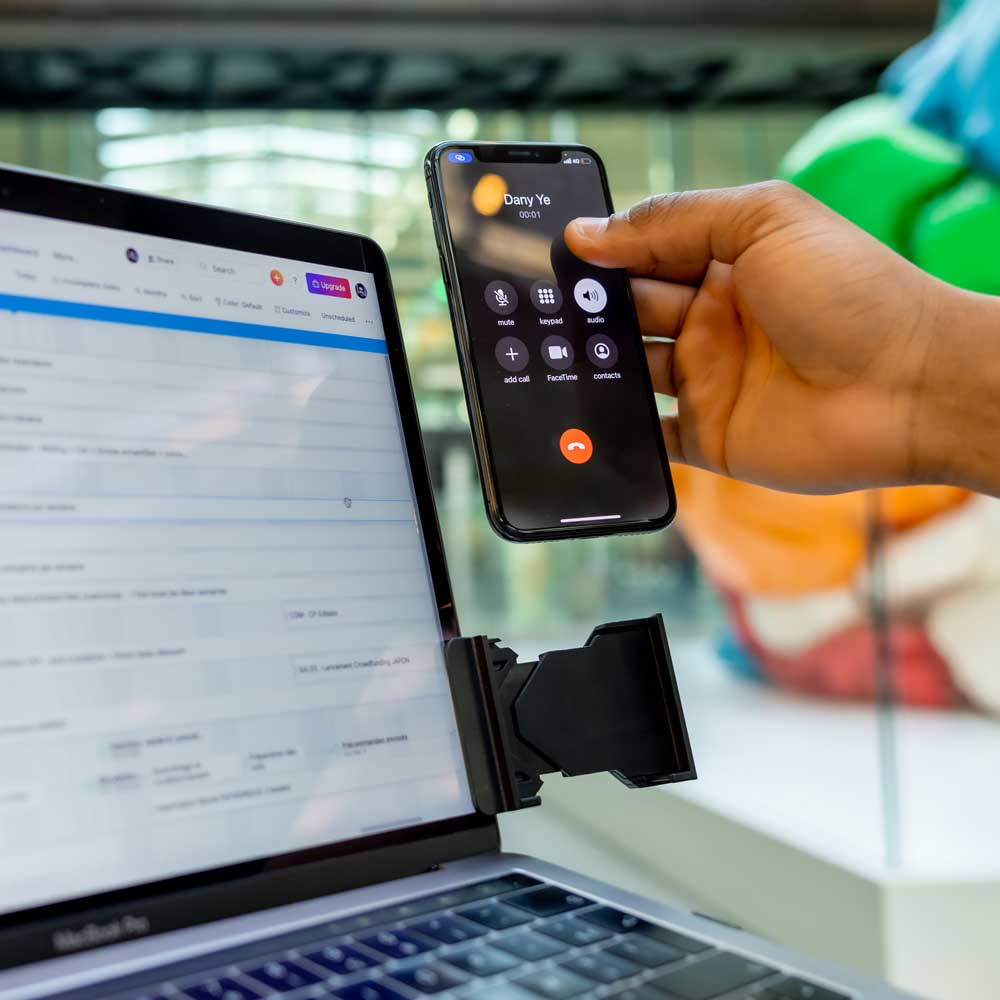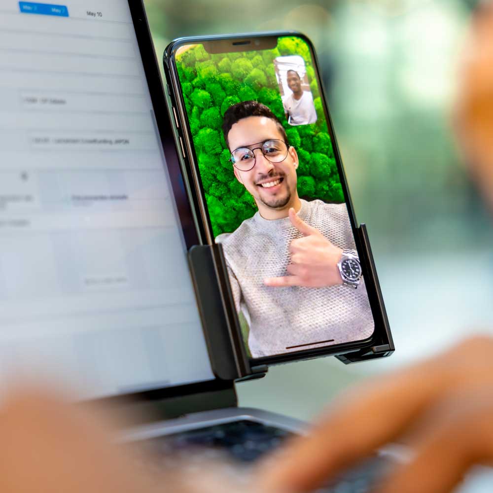 Gagnez de la place sur votre écran en faisant vos visioconférences sur votre téléphone, à côté de votre ordinateur.