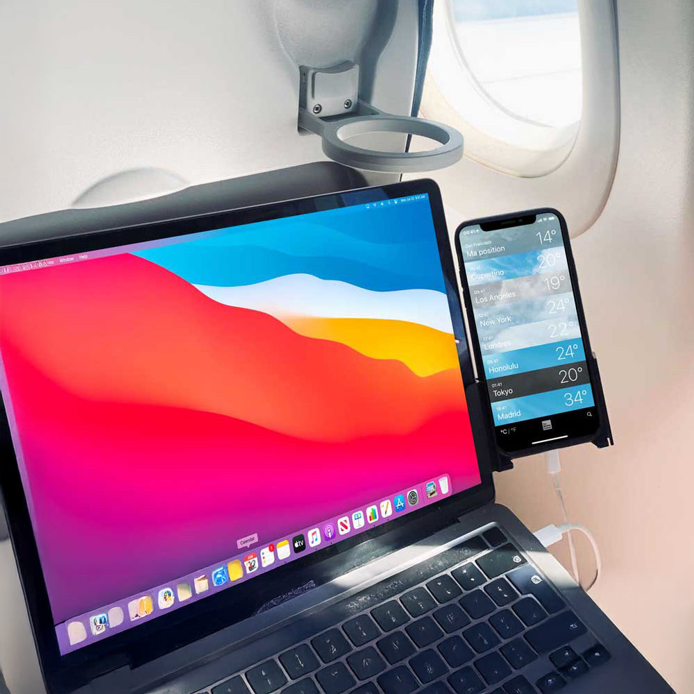 Lorsque vous vous déplacez, vous avez la possibilité de travailler. En train par exemple, vous pouvez simplement poser votre ordinateur et y clipser votre téléphone. Le tour est joué !