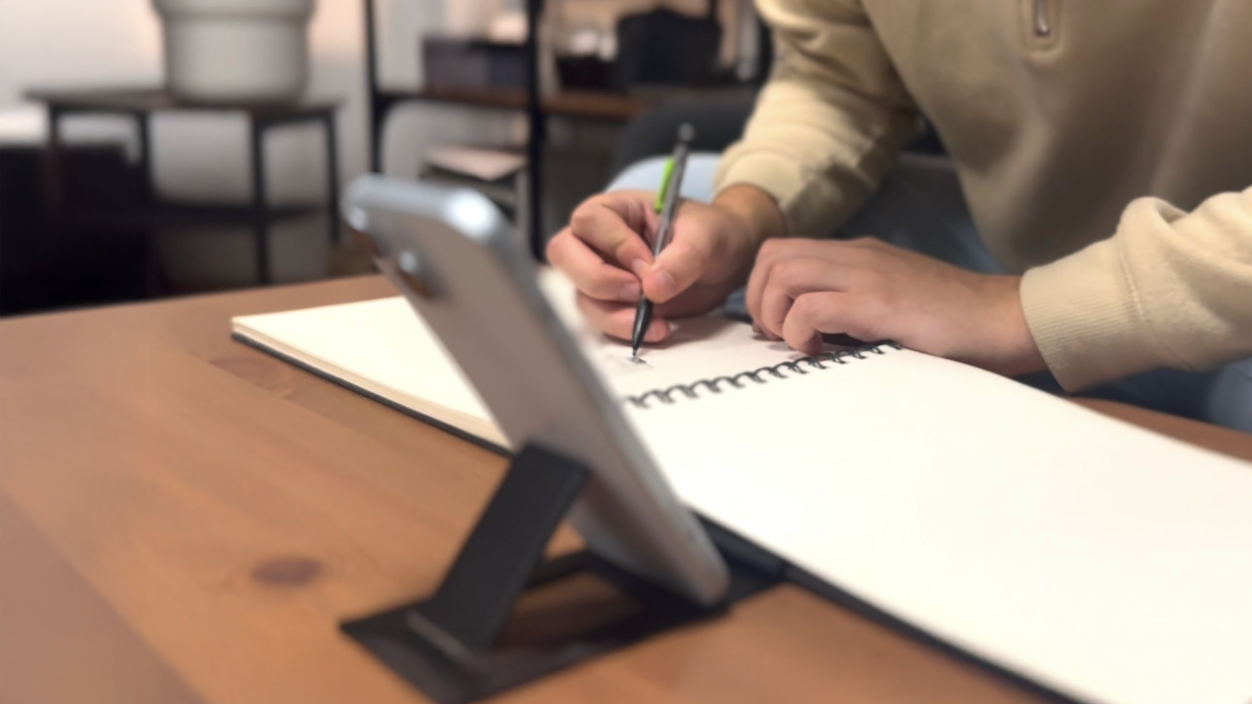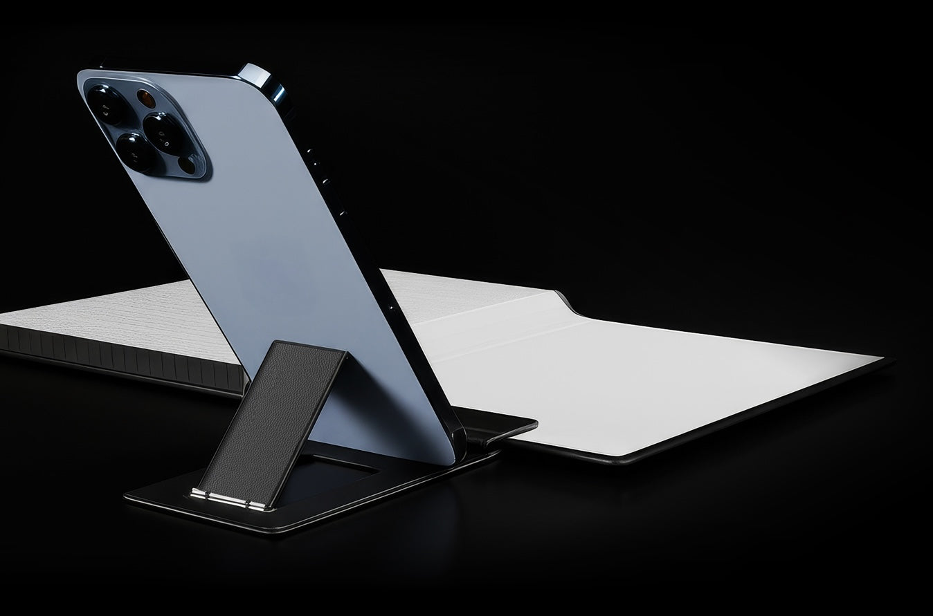 Suivez vos appels tout en prenant des notes dans votre carnet. Le Phoneside Note garde votre smartphone stable et accessible, sans encombrer votre espace.