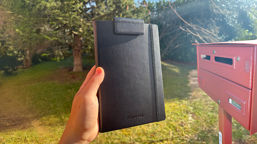 Le Phoneside Note est compatible avec tous les formats de carnet, cahier ou bloc-npte (A6, B6+, A5, B5+, A4…), quelle que soit l'épaisseur de leur couverture.